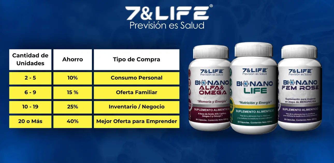 En BIONANO, nos esforzamos por ofrecer suplementos de la más alta calidad, creados para mejorar tu bienestar y salud. Además, hemos diseñado una estructura de precios que no solo te da acceso a productos excepcionales, sino que también “te permite ahorrar más a medida que compras más unidades